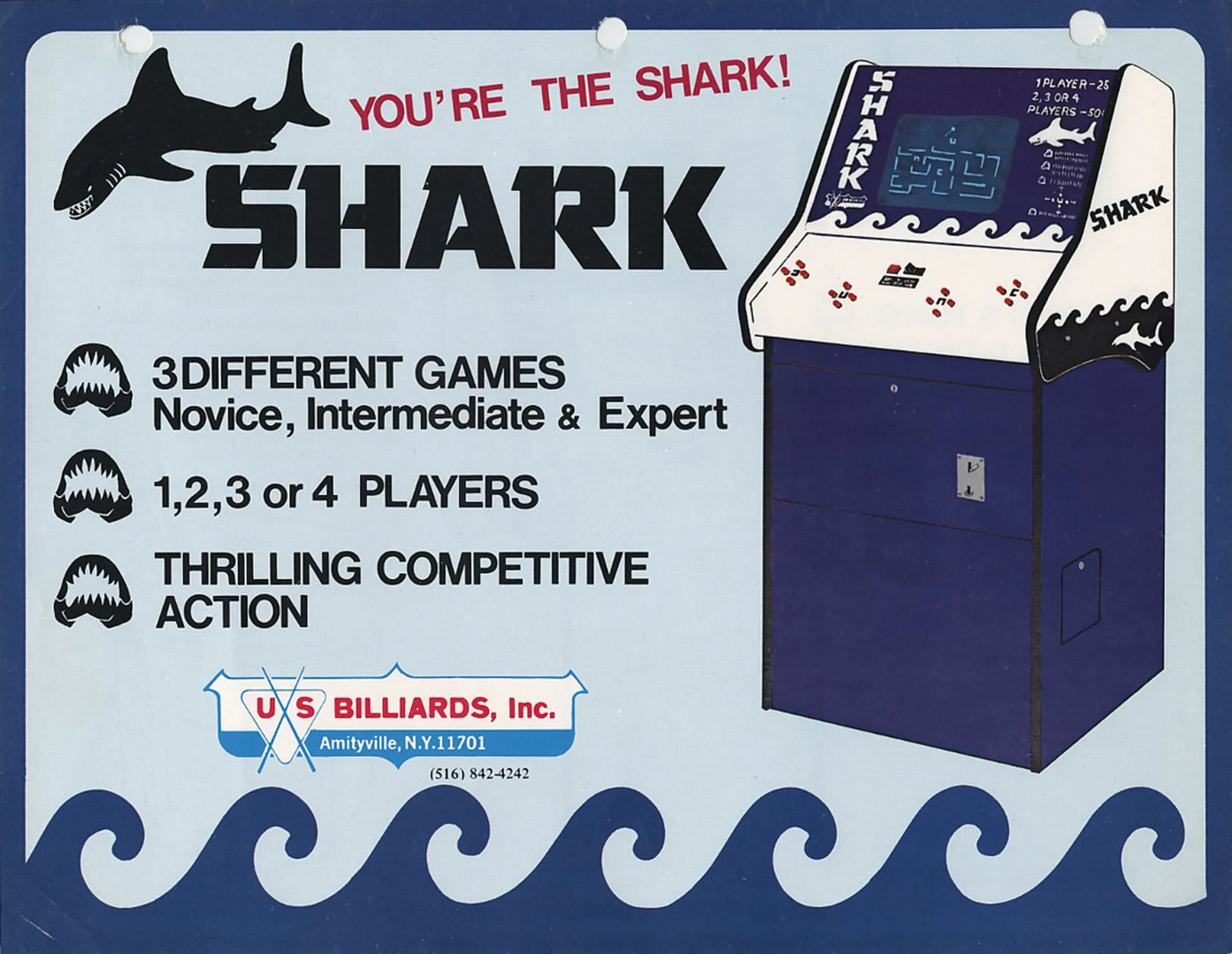 You control a shark who must swim through a maze of shark traps and nets and attack a swimmer before she reaches the shoreline. The first shark to eat five swimmers wins.