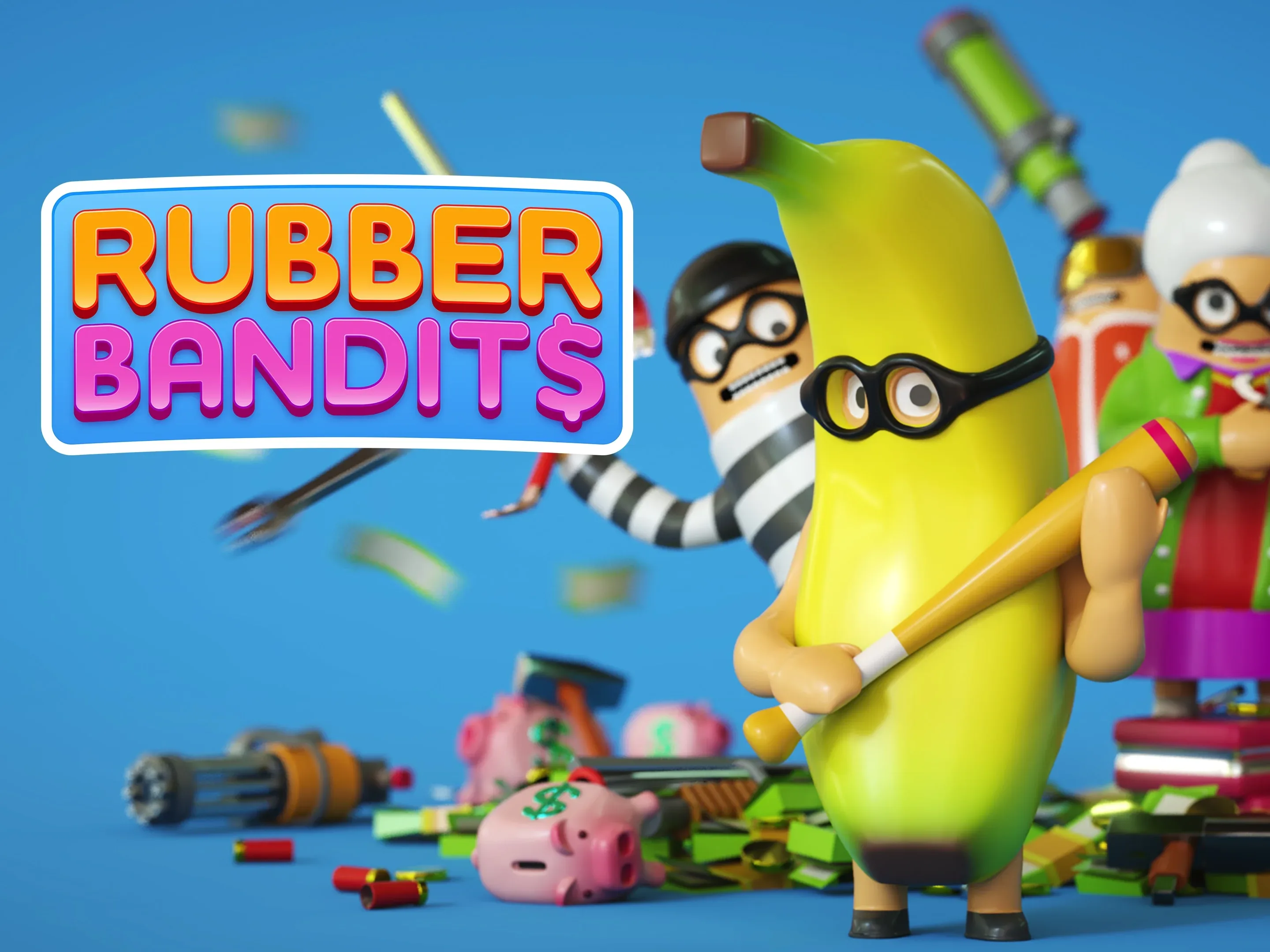 Not every heist goes as planned in Rubber Bandits - a physics-based multiplayer brawler for 1-4 players.