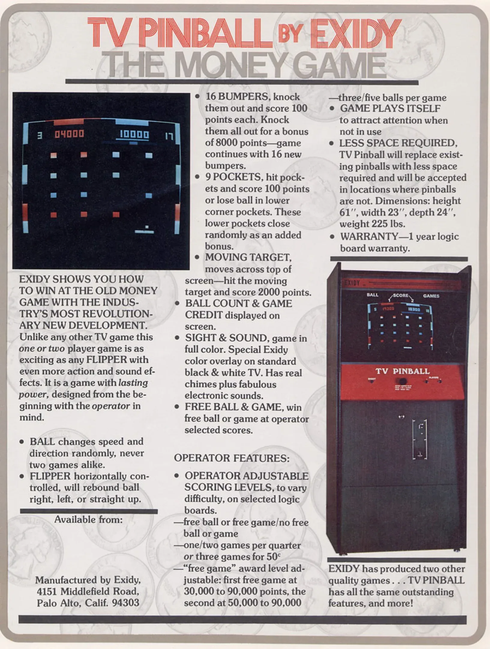 Exidy's first game, a ball-and-paddle game inspired by pinball mechanics.