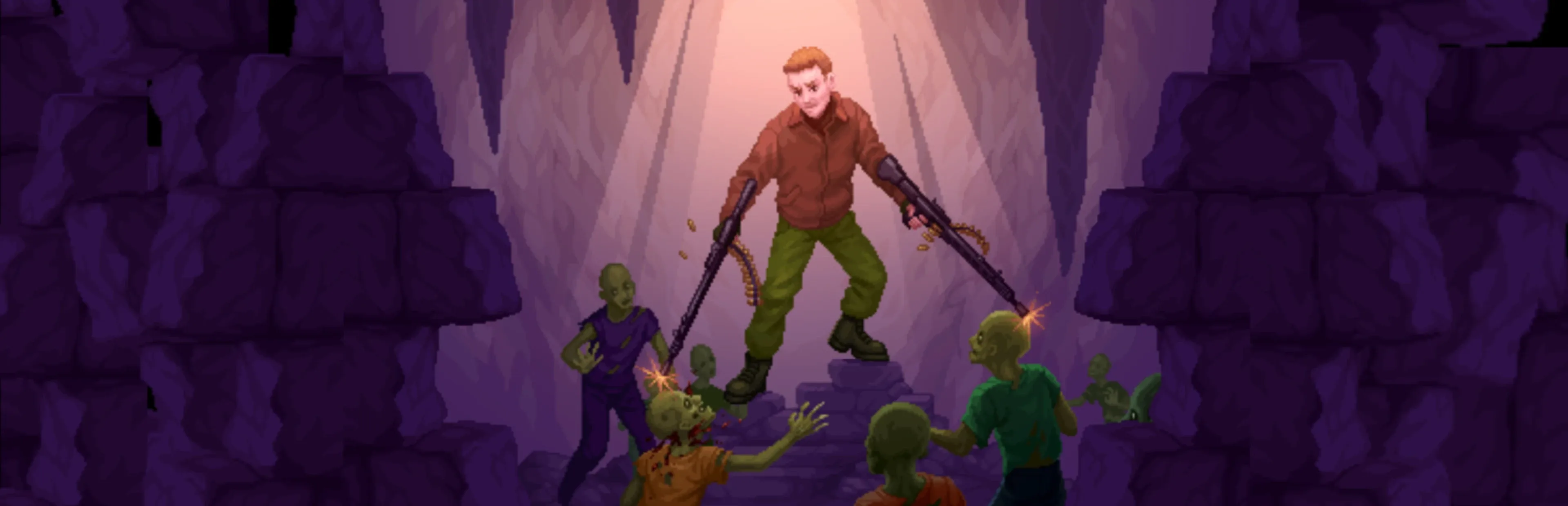 Zom Tom is a 2.5D shoot' em up dungeon-crawler where you slay zombie bodies, survive the hell-spawn onslaught, and full send copious amounts of lead downrange.