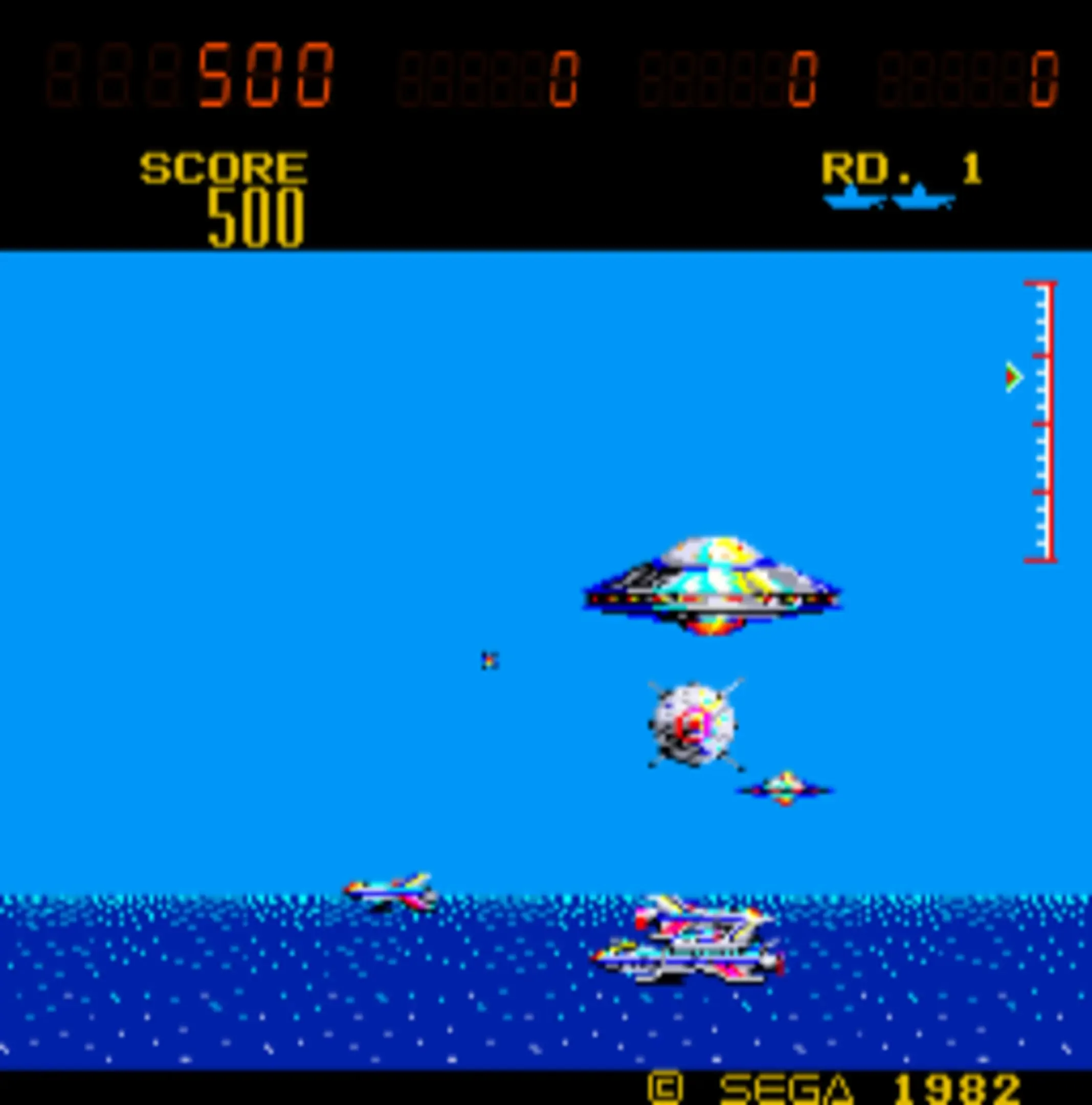 SubRoc 3-D is a shooter, where you look through a periscope and shoot at both sea and air-targets. The arcade version features 3-D effects.