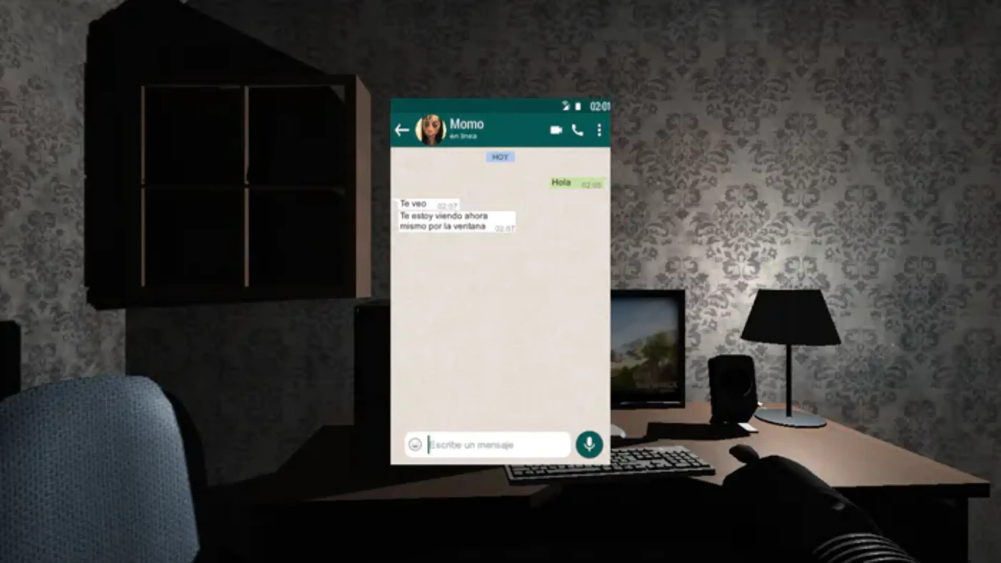 Momo is a horror game based on the history of the whatssap user "momo", in the game, you will be a guy that contacts momo by whatsapp, and now he will be pursued by the monster of momo. You will have to complete some tasks before get rescued, like search things, hide, close doors, etc. The objetive is to survive until the timer reachs 00:00 then, the police will arrive and you would able to escape.
