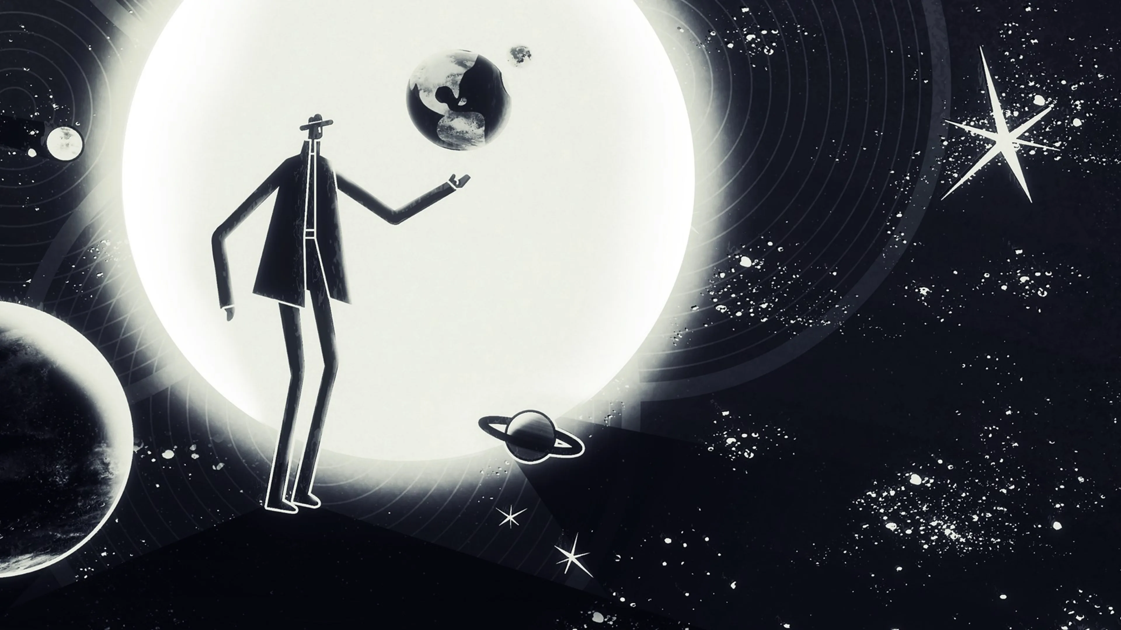 A noir adventure spanning time and space. You play as No Man, a watch peddler caught in a love triangle with other cosmic beings, Miss Mass and Golden Boy. When your affair turns into a bitter confrontation, you will witness a gunshot fired by a jealous god—otherwise known as The Big Bang. Jump into the expanding universe and search for a way to prevent or destroy creation and save your love.