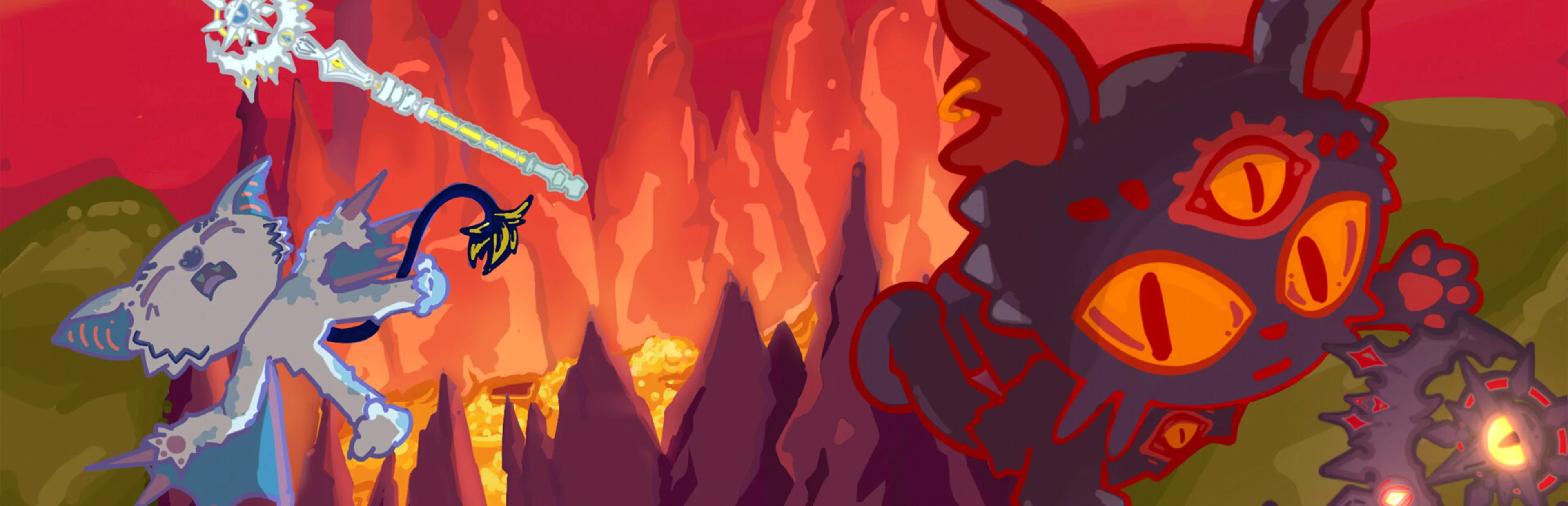 King of Hell is a 6-player, online, Arcade Party Game. You play against your friends in a arena filled with random Items and Jump'n Run obstacles. Try to knock your opponents into the lava to stash points and then climb up to the top platform, to score your points and become King of Hell!