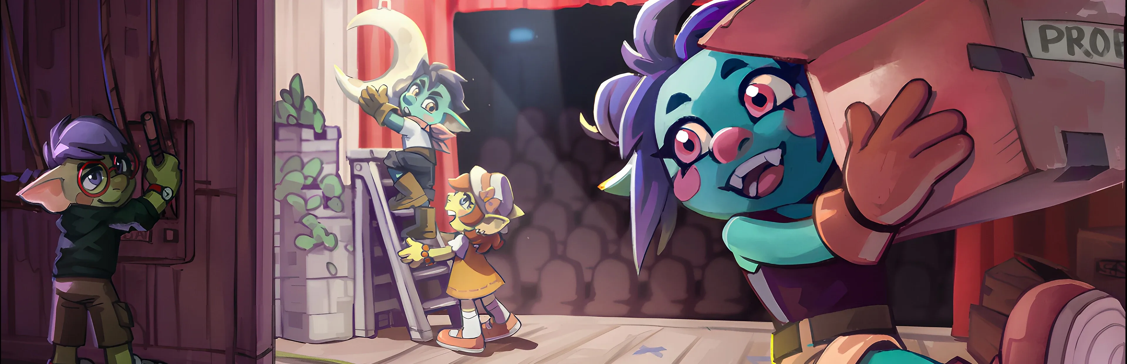 Staged is a co-op first-person physics party game for 1–4 players. Play mischievous goblins, rebuild stage sets from reference photos, haul oversized props through tight backstage spaces, and get every placement right before the curtain rises.