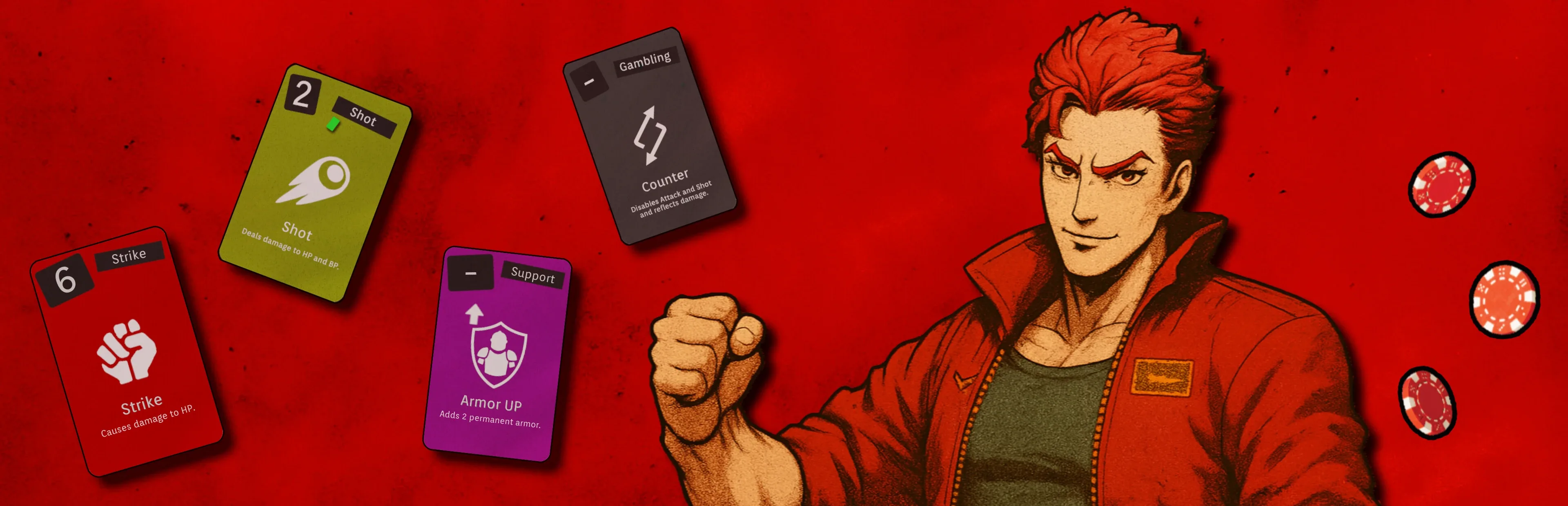 A 1v1 turn-based fighting card battle set in a casino!Bet your chips and fight for the right to strike!Luck and strategy, nerve and intellect—everything will be tested ina thrilling battle where the tide can turn in an instant.Outplay your opponent, seize victory, and claim your rewards!