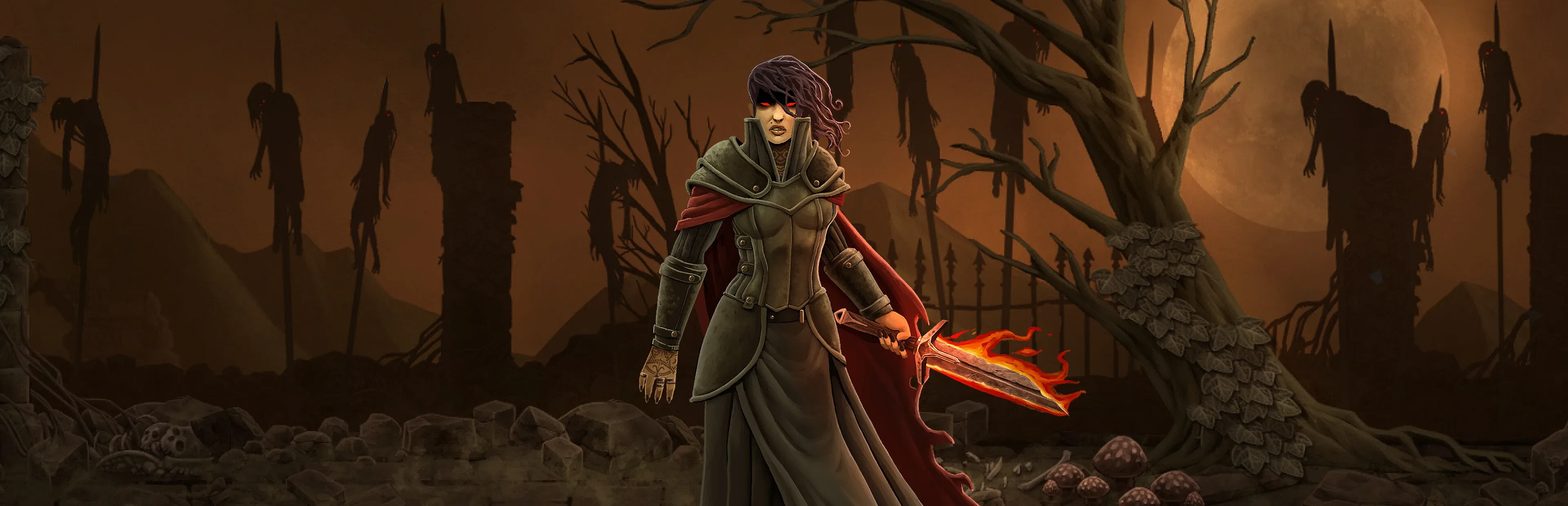 Lead a cursed party through a ruined world in this grimdark side-scrolling RPG. Build your team, master tactical combat, and unleash forbidden powers to survive an endless parade of nightmares. Decide what, if anything, is worth salvaging from a world that has been reduced to ashes.