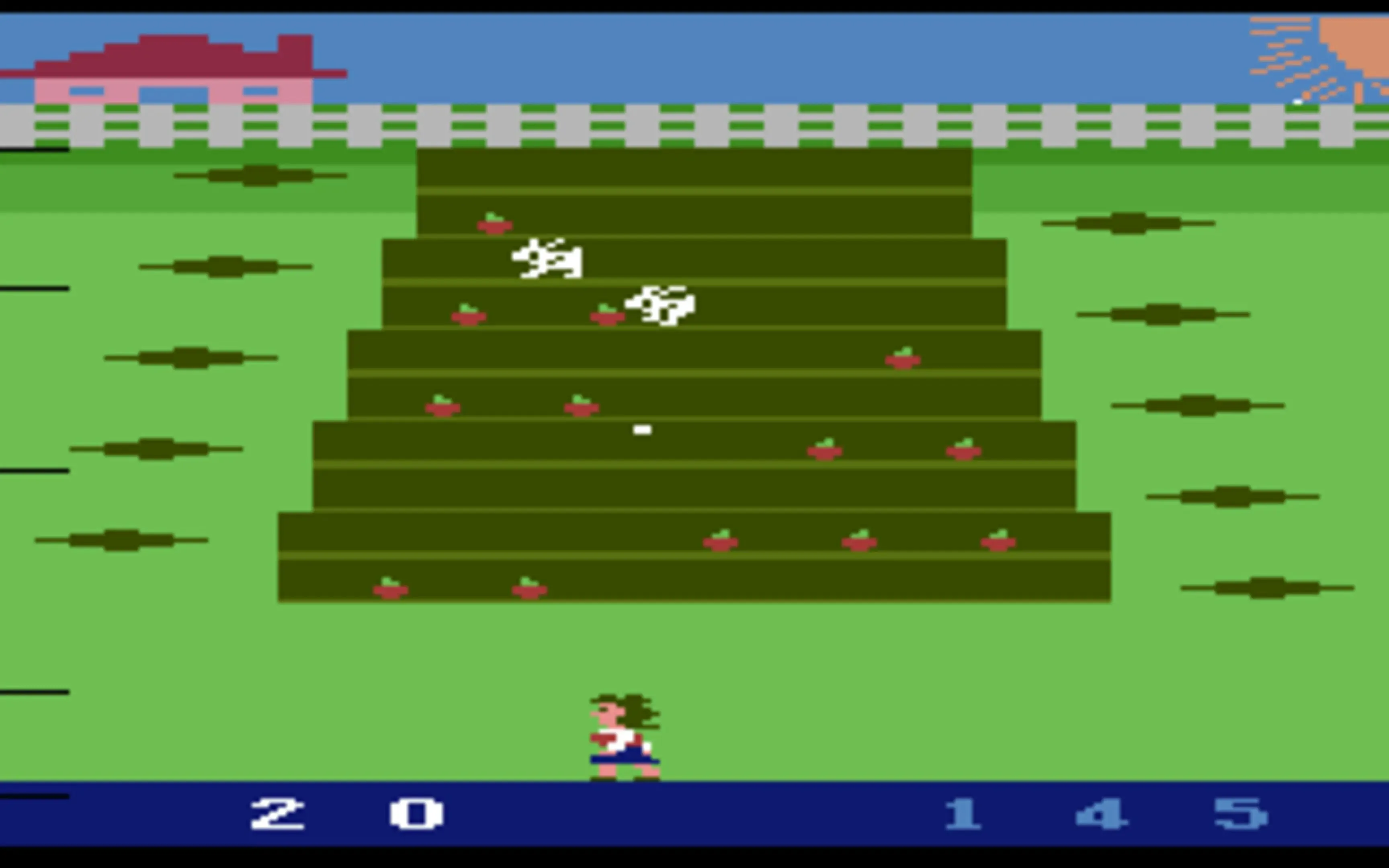 You are a farmer, named Billie Sue, trying to protect your crops. One patch in particular is giving you trouble. It's surrounded by ten holes from which wabbits dart into your field. Scare off the pesky creatures by throwing rotten eggs at them.