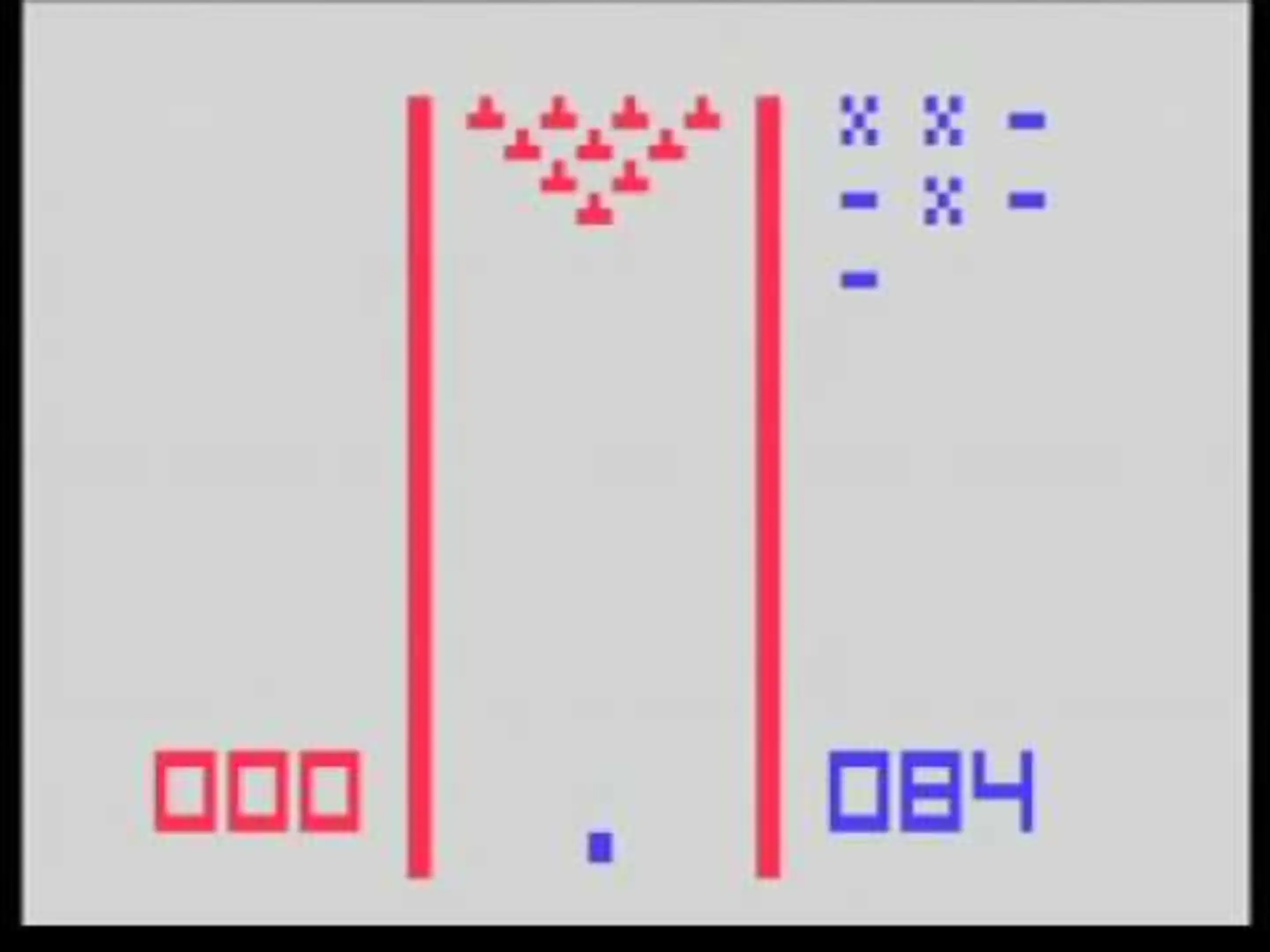 The object of the game is to knock down as many pins in 10 frames of bowling. The game gives the player an overhead view of a bowling lane. The player's bowling ball starts out moving left and right across the front of the lane. This has the player trying to get the lane position they want the ball to start traveling down. Once the ball starts rolling down the lane, the player can curve the ball left or right. Once the curve has started, it can't be changed further. The game has 18 variations. They involve choosing the combination of number of players (1 or 2), then speed of play (slow, normal, fast, and fastest), and selecting a regular or split game. Regular games start with all pins standing in each frame while the split games have a random number of pins missing and the player has 2 balls to knock down the remaining ones. This preprogrammed cartridge plugs into the console of the Fairchild Video Entertainment System for more TV fun on the Channel F Network.