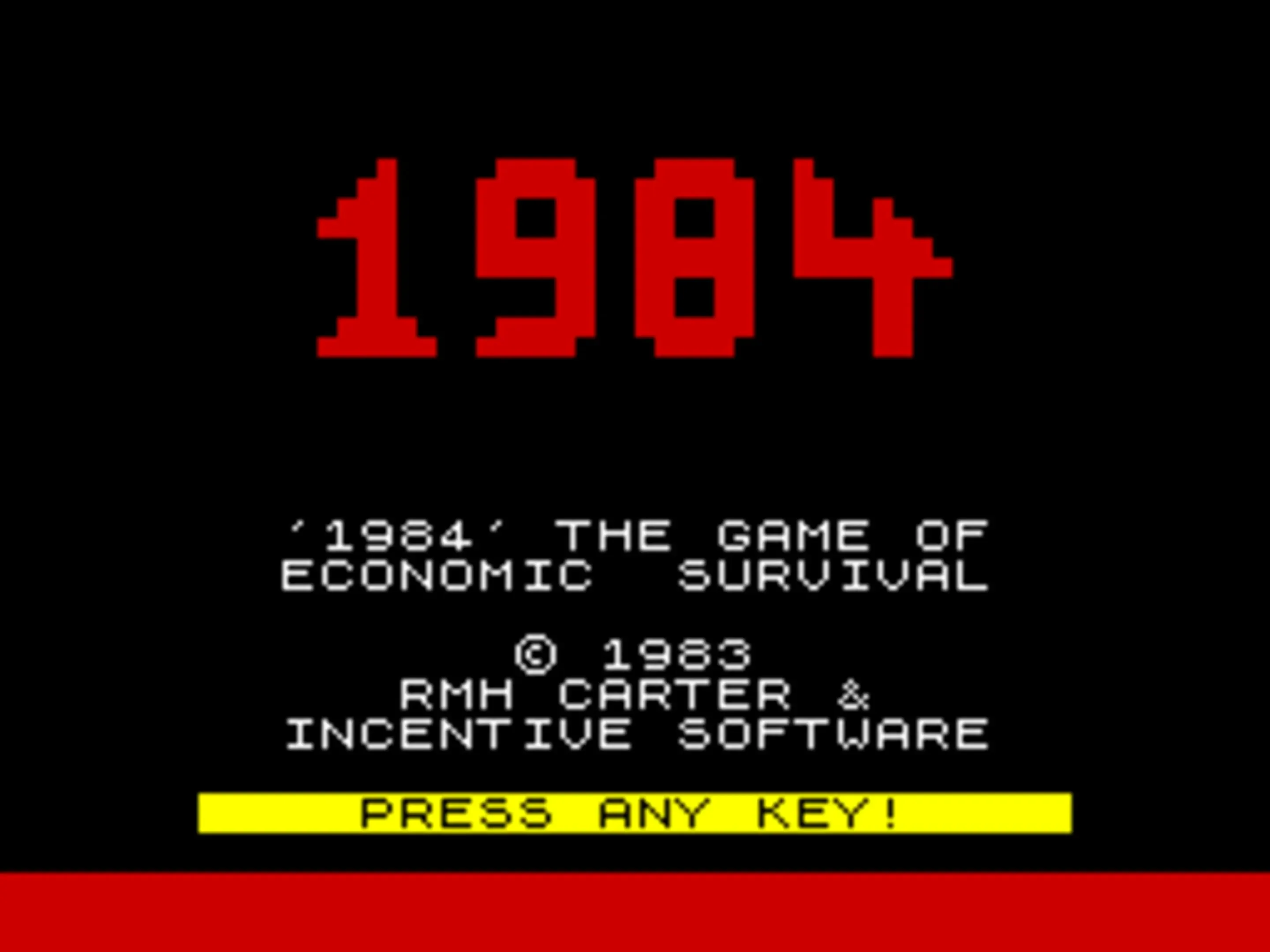 84: A Game of Government Management is a financial management game which gives you the chance to be the Chancellor of the Exchequer for the United Kingdom in the 1980s. Starting in 1984 with the real economy figures from 1982/83, you must try to survive in office for as long as possible trying to keep the books balanced and making more money for the country without upsetting too many people. Your first screen shows you the Government Balance Sheet with the figures balanced and over the next year you will attempt to keep it balanced. As you play over your first year you will be presented with various screens and these either show the stats for various sectors or ask you various questions about adjusting figures like the Minimum Lending Rate or the percentage in wage increases for various sectors. Other sectors or departments you will have to juggle the figures for include investments, Industrial Levy, funding, foreign aid and Industrial Grants. You will also have a cabinet meeting that asks you a question on various incidents that are happening at the time. Once you have completed your first year, you will be shown various graphs and given a performance rating. Then it's on to 1985 and hopefully many years after that.