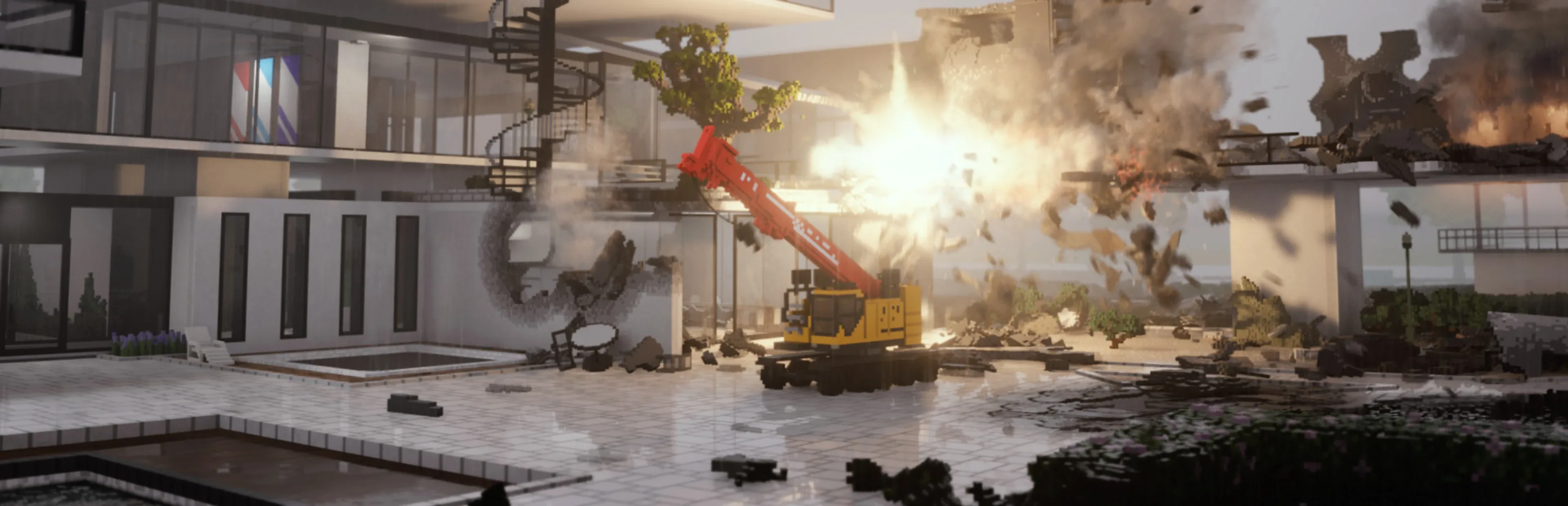 Prepare the perfect heist in this simulated and fully destructible voxel world. Tear down walls with vehicles or explosives to create shortcuts. Stack objects to reach higher. Use the environment to your advantage in the most creative way you can think of.
