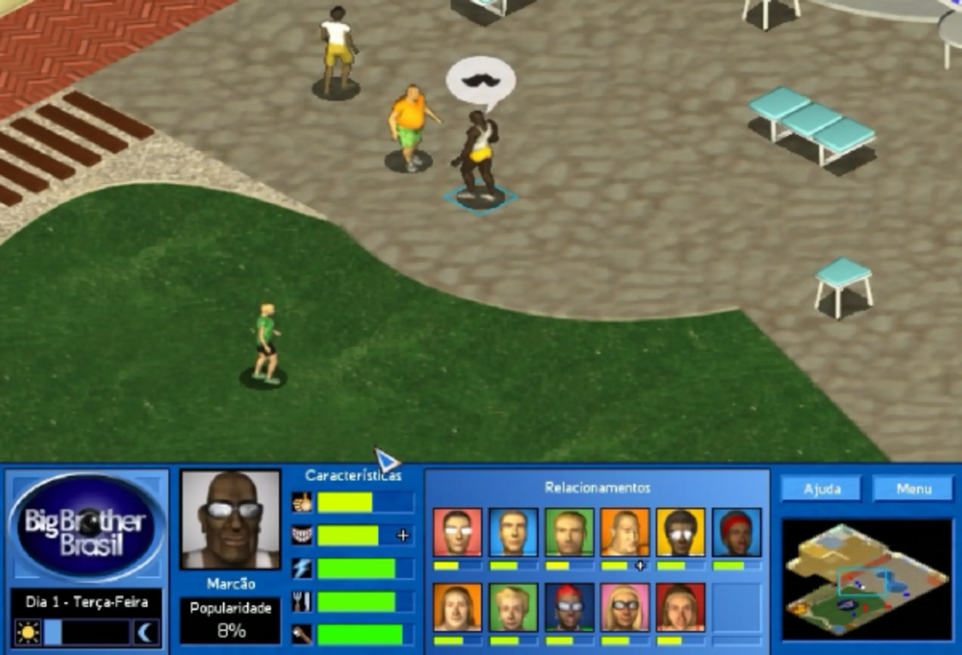 Big Brother Brasil is a simulation game based on the reality show by the same name, developed by Continuum and published by Brasoft in collaboration with Rede Globo. Choose your character according to its physical and psychological characteristics, relate to the other participants, and form plots - but be careful! The audience is following everything and, if you go to the chopping block, you may be evicted.