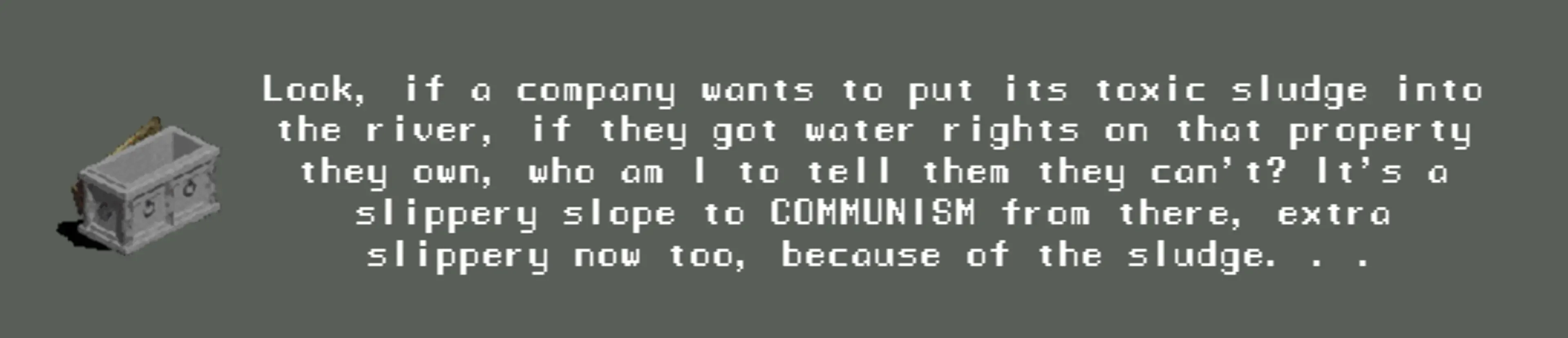 A satirical take on the tycoon video game genre. Expect a wild ride.