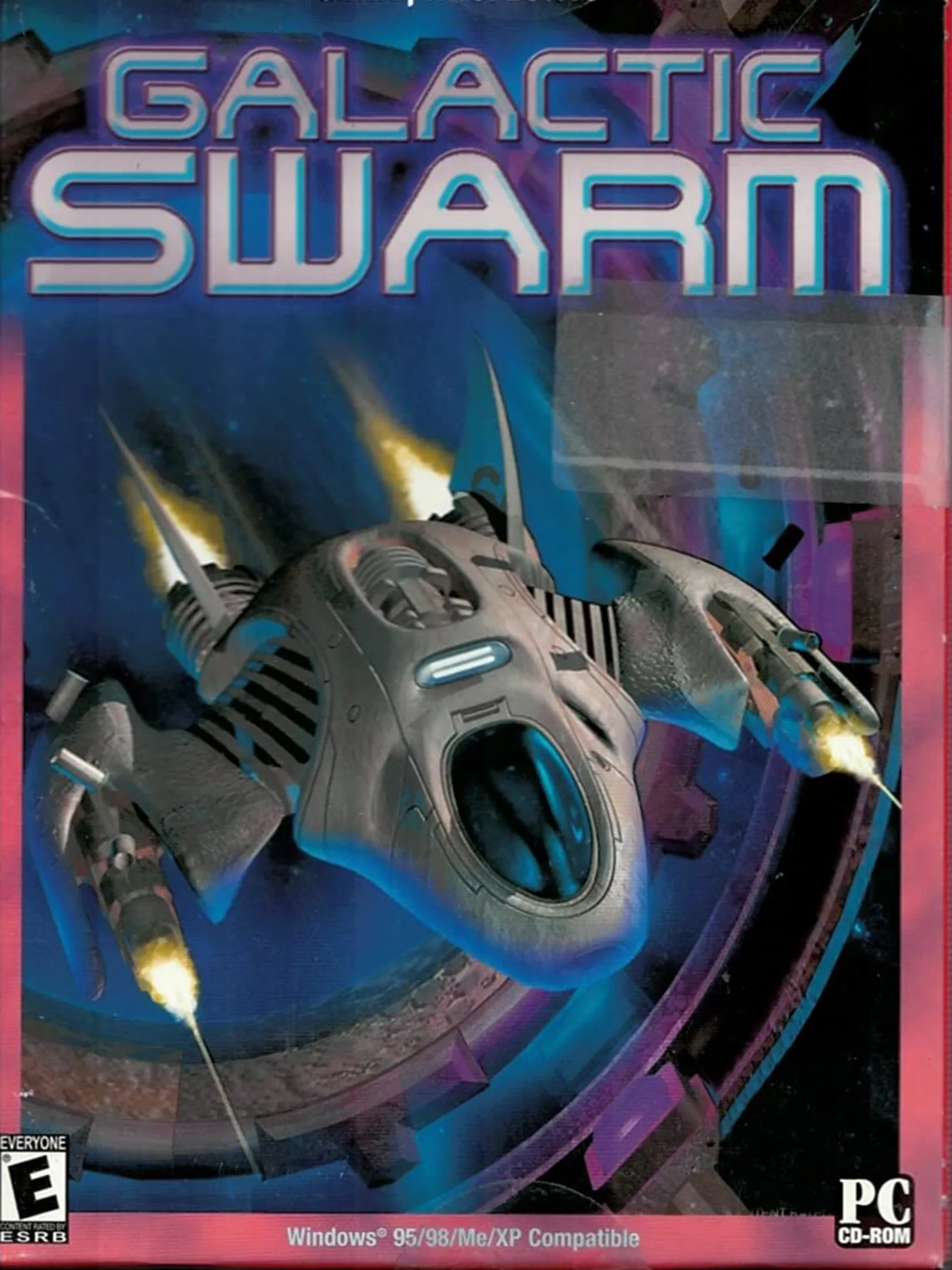 Swarm is a top-down space shooter, similar to asteroids. You fly a ship around collecting an fuel source called EZT (Endron Zymithium Trisistaline) for the corporation you're indentured to. There is an aggressive alien species called the Clagnor which you must avoid / defeat. You can collect ammo for various weapons and mines which help you fight enemies / destroy asteroids, and shields which keep you alive when taking damage. The game is level based. The main type of level requires you to connect enough EZT. The second type is a level where you must kill a certain number of enemies. And lastly there is an uncommon bonus level where you can collect as many items as you can in a short amount of time. Items carry over between levels, but are lost when you lose a life. If you lose all lives the game is over, though you may start again from the highest level you reached. There is a high score list as well. The game contains 100 levels of increasing difficulty.
