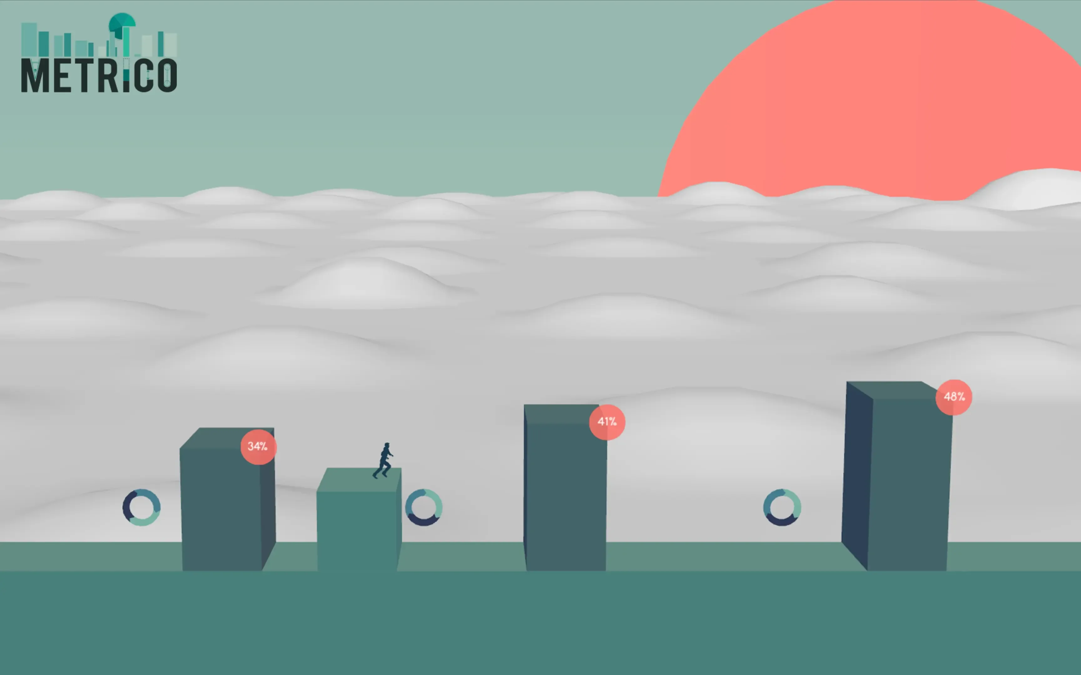 Metrico centers around infographics. It’s an atmospheric puzzle action game with a mindset of its own. The idea was born a few years ago, out of admiration for the beauty of infographics as an art form. It was reinforced by seeing that infographics have become increasingly important in contemporary pop-culture. While they haven’t made their way to videogames yet, Digital Dreams feels it’s a place where they can work exceptionally well. This is not just because of their pretty aesthetics as much as it is that games are about interaction with data visualization.
