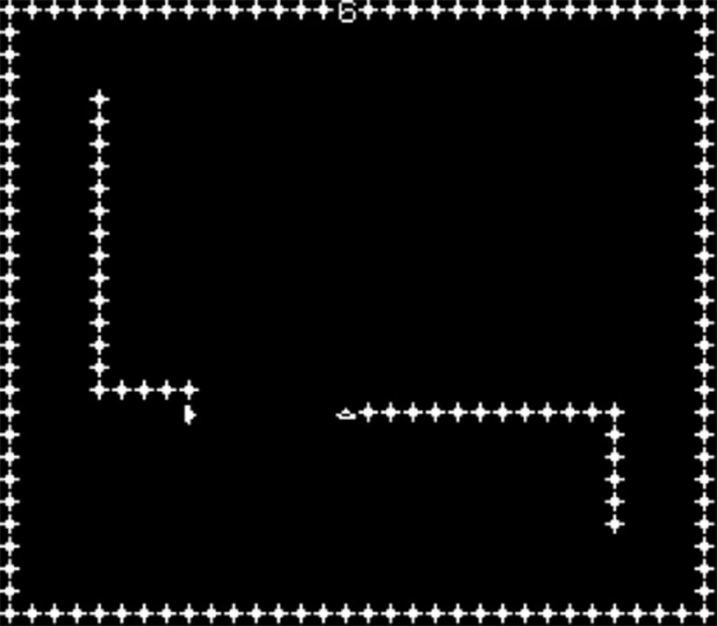 Mine Sweeper is two player game. Each player controls a boat that can place mines. The game plays like a typical light-cycle game such as Blockade. The boats leave continuous trails of mines behind. Players can only turn at 90 degree angles. To win a player must last longer than your opponent before hitting the borders of the screen or a solid line of mines (first person to hit something loses). The game is over when a player has six points.