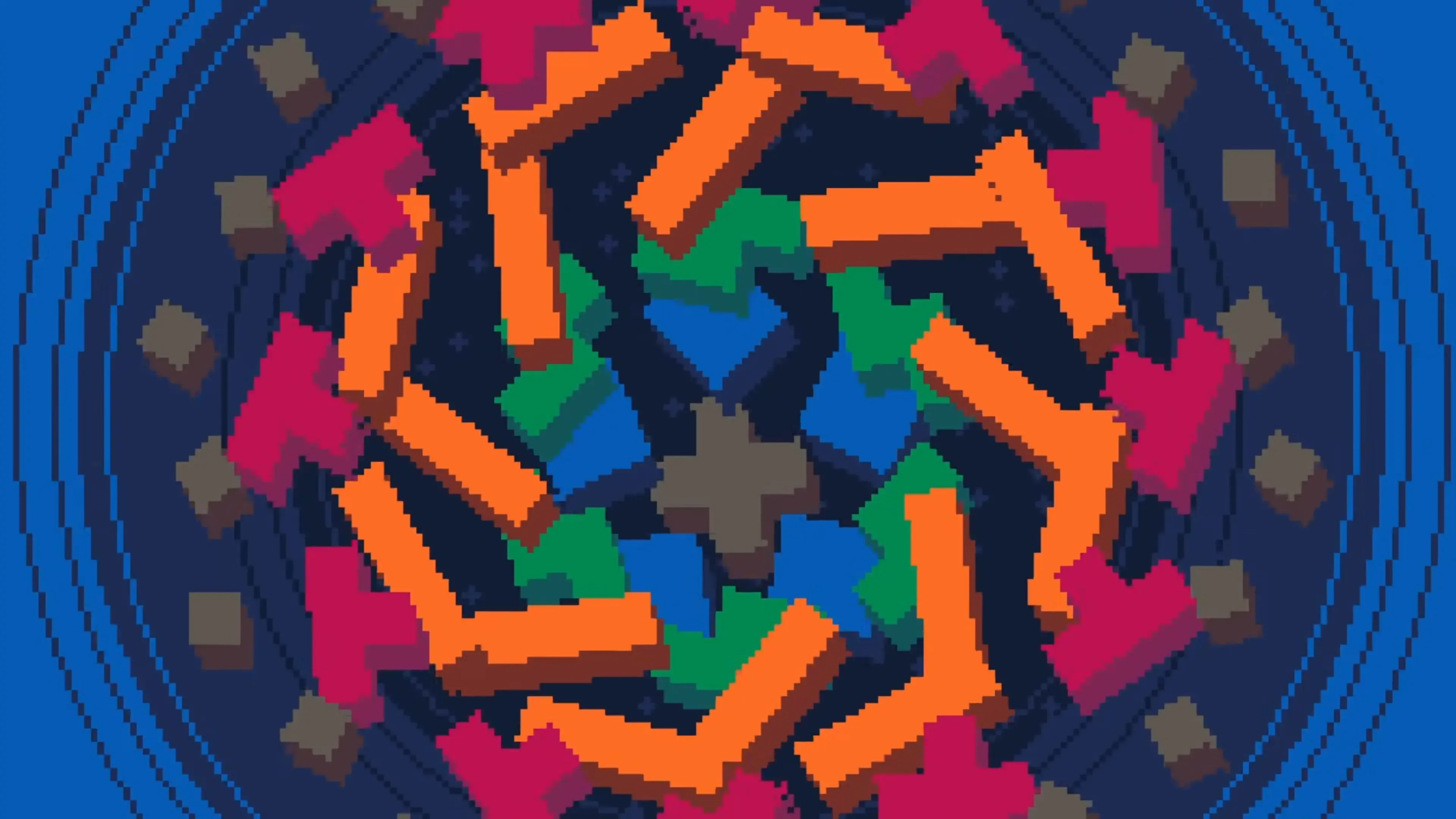 Infinimoes is a space filling puzzle game (like tangrams) involving a variety of polyominoes and sometimes an infinitely repeating space.