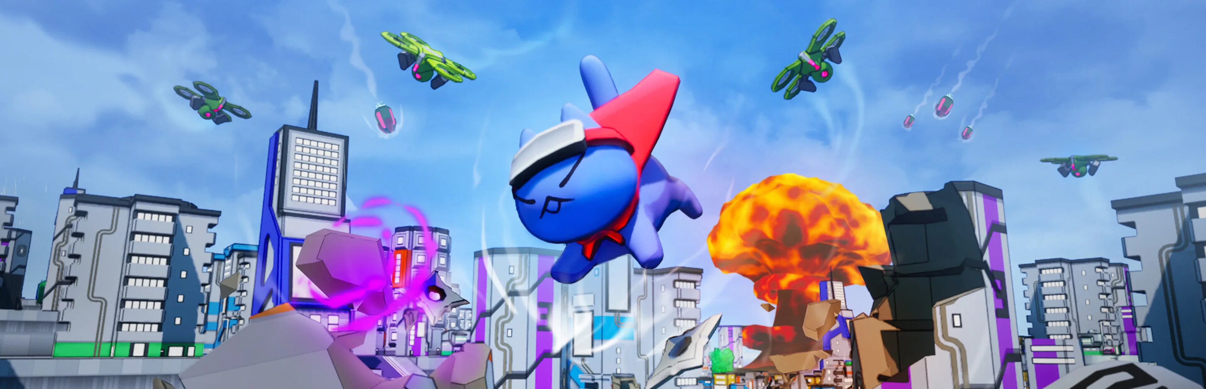 CAT-A-STROPHIC is a goofy arcade 3D city destruction game with rogue-like elements where you play as Bluu, a colossal kaiju cat, rampaging through different cities to rescue your precious kittens! Embrace the purr-fect blend of chaos and relaxation as you level multiple towns and cities. Unleash havoc by swiping at buildings, pouncing on structures, and hurling objects with telekinesis. As the chaos unfolds, enemies will continuously spawn to capture Bluu and stop her destruction spree. Once the level is cleared, you can rescue a kitten that supercharges Bluu’s powers, enhancing her abilities with unique effects like summoning lightning storms or turning invisible. Embrace the carnage, adapt your playstyle, and lead Bluu to victory!