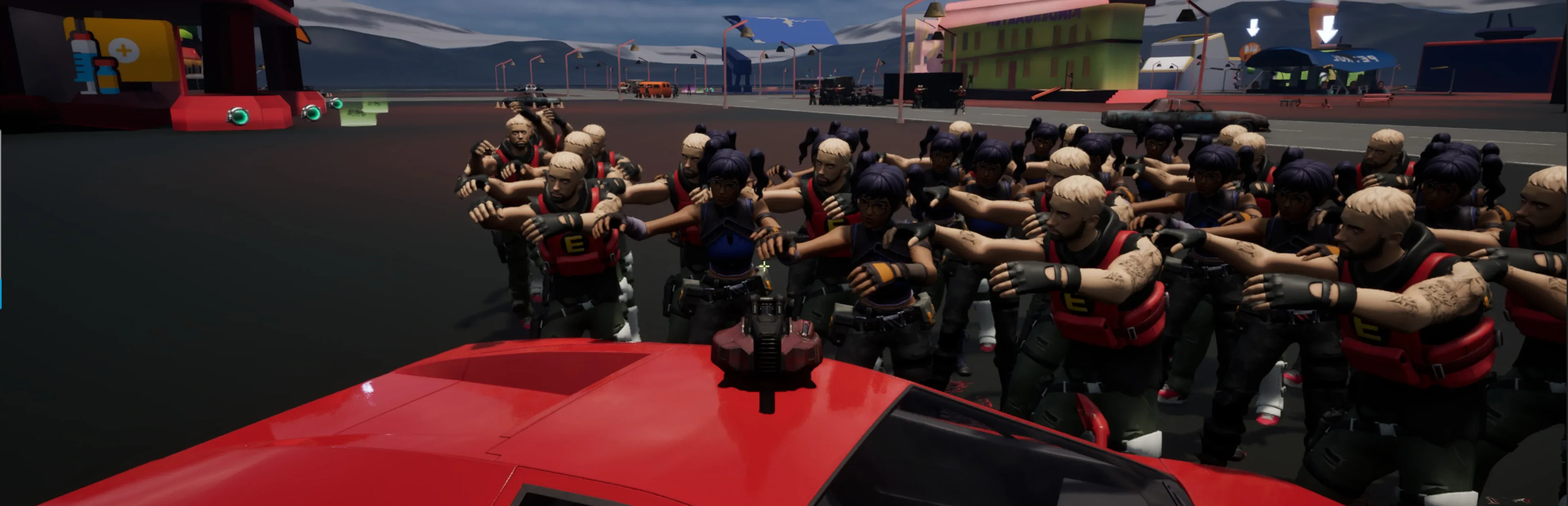A first person 3D shoot em' up game with the goal of surviving the map(s) while salvaging every possible resource present. Choose your favorite vehicle and unleash the hell of a massacre on zombies using gory weapons and perform morale boosting stunts.
