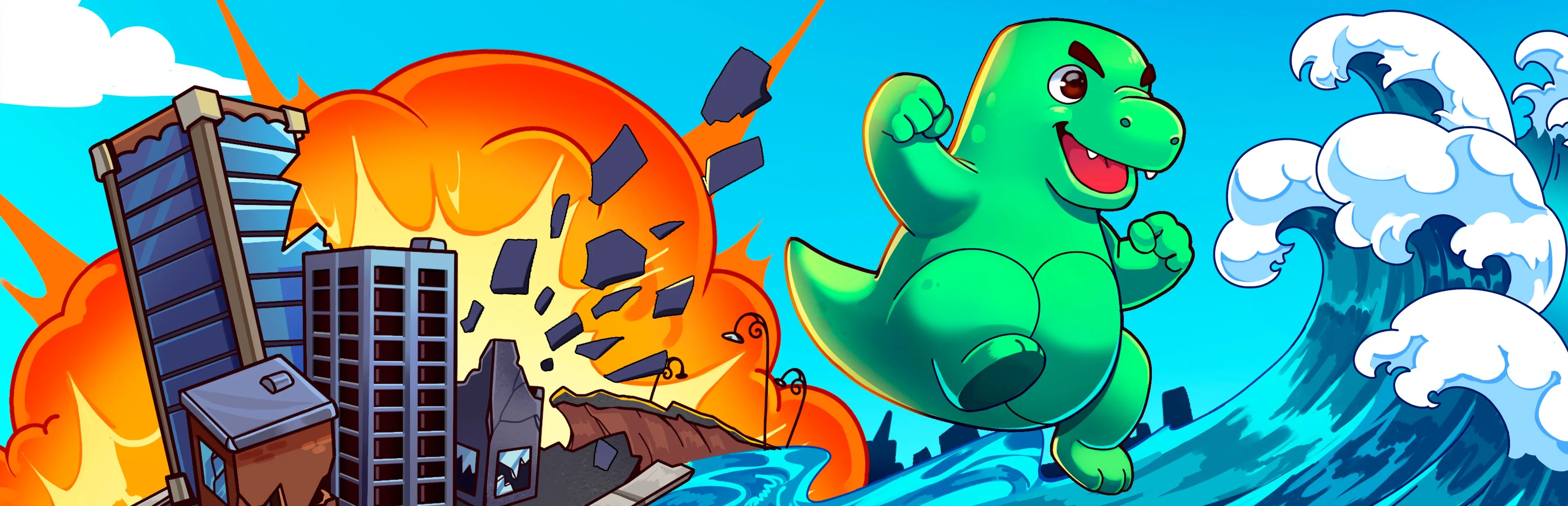 Wrecking Wave is an explosive action game with physics-based destruction focused on Challenge and Speedrun. Unleash a wave of chaos and smash cities, chase high scores and stop a mad scientist from polluting your ocean with toxic waste.